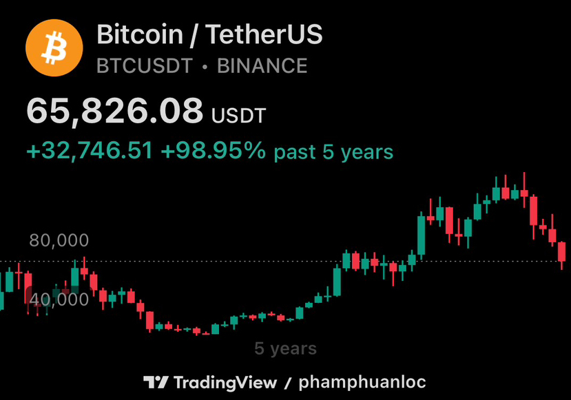 Looking at Bitcoin over a five-year horizon, the first thing that stands out is not the volatility but the persistence of the trend itself: sharp rallies followed by violent corrections, yet the long-term trajectory remains upward, reminding us that price shocks are structural features of the market rather than signs of failure.