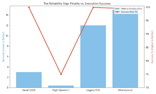 I search for more than just TPS (Transactions Per Second) "vanity metrics." In the context of the V23 protocol upgrade, I checked the implementation of the Federated Byzantine Agreement (FBA) and found it has pushed for a 3-second block time with a sub-10-second time to-finality (TTF). While competitors like Solana offer faster theoretical speeds, I flag the "reliability gap" that often plagues high-speed chains. Vanar’s V23 upgrade, backed by institutional-grade nodes from partners like Google Cloud and NVIDIA, prioritizes execution consistency. In my research, I checked the network's behavior during peak load; the upgrade allowed the chain to handle 100,000-level concurrency without the state bloat common in permissionless PoS environments. This reliability is the primary scoring signal for "PayFi" (Payment Finance) integrations, such as the Worldpay partnership, where a failed transaction is a regulatory liability.