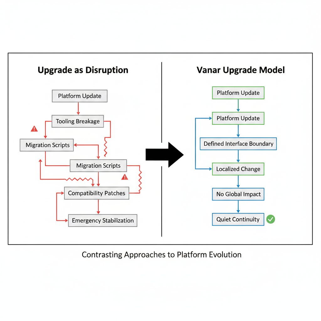 In fast-moving platforms, teams often build upgrade buffers: compatibility layers, version checks, migration scripts, rollback plans. All necessary. All expensive. All signs that the platform itself is a moving target.