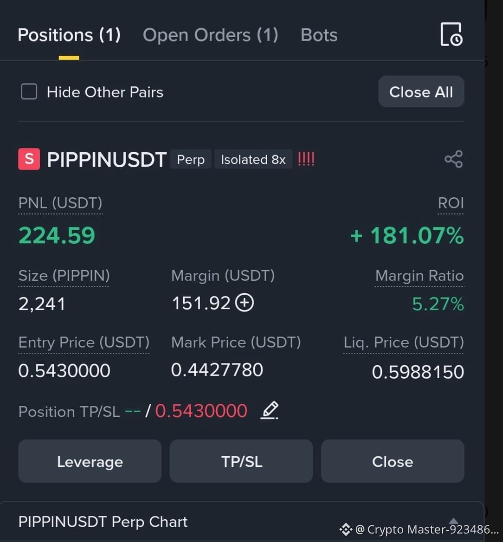 $PIPPIN /USDT trading position, the market is showing strong bearish movement. The current mark price is around 0.442, which is below the entry price of 0.543, giving a good profit in the short position. This indicates sellers are in control and the coin may continue moving downward if weakness remains. The next support could be near 0.40, while a bounce back above 0.50 may slow the drop. Since volatility is high, traders should secure profits with stop-loss or take-profit levels. Always manage risk carefully, especially with leverage trading.