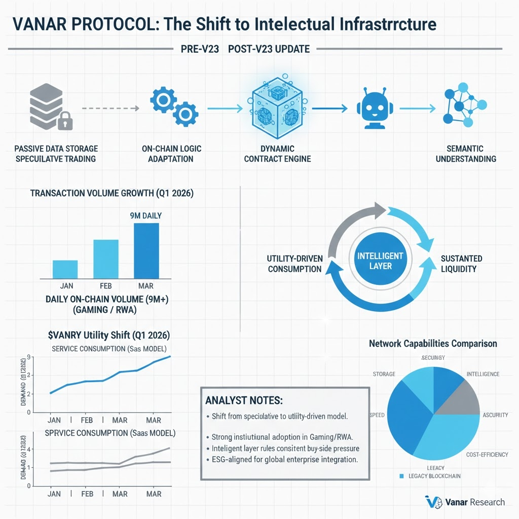 The move from passive storage to active reasoning is visible in the recent implementation of the V23 protocol. This update introduced a dynamic contract engine that allows for on-chain logic to adapt without the friction of redeploying entire systems. According to data from early 2026, the average on-chain transaction volume has climbed to over 9 million daily interactions, driven largely by automated processes in the gaming and RWA sectors. This isn't just noise; it represents a structural shift toward @Vanarchain being an "intelligent layer" where transactions are governed by semantic understanding. If a network can understand the context of a payment before it executes, does the concept of a "dumb" transaction become obsolete?
