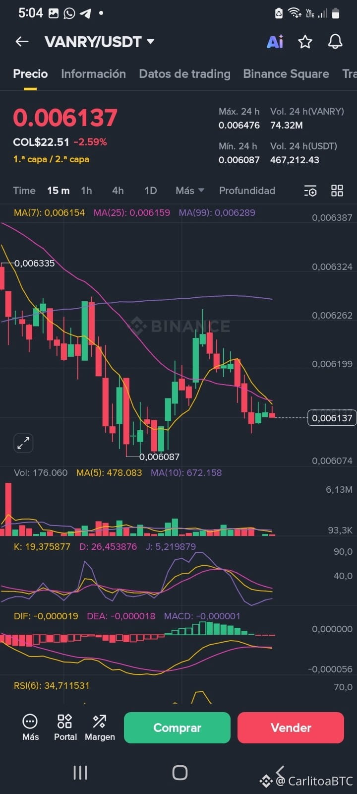 El movimiento de @Vanarchain con su tokens $VANRY despues de alcanzar un valor de 0.006365 dólares 💵 dónde toca techo y baja a un valor de 0.006087 tocando pisó yvsube a un valor actual de 0.006137 💵 dólares moviéndoseen el mercado de binance que opinas de este movimiento #vanar