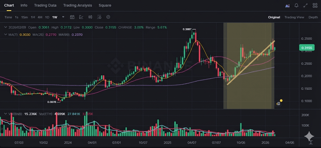 BNB is showing relative strength against ETH, with the BNB/ETH pair rising about 7% in early Q1. For beginners, this ratio shows which asset is performing better. Right now, BNB is losing less value than $ETH often an early sign that capital is shifting toward BNB.