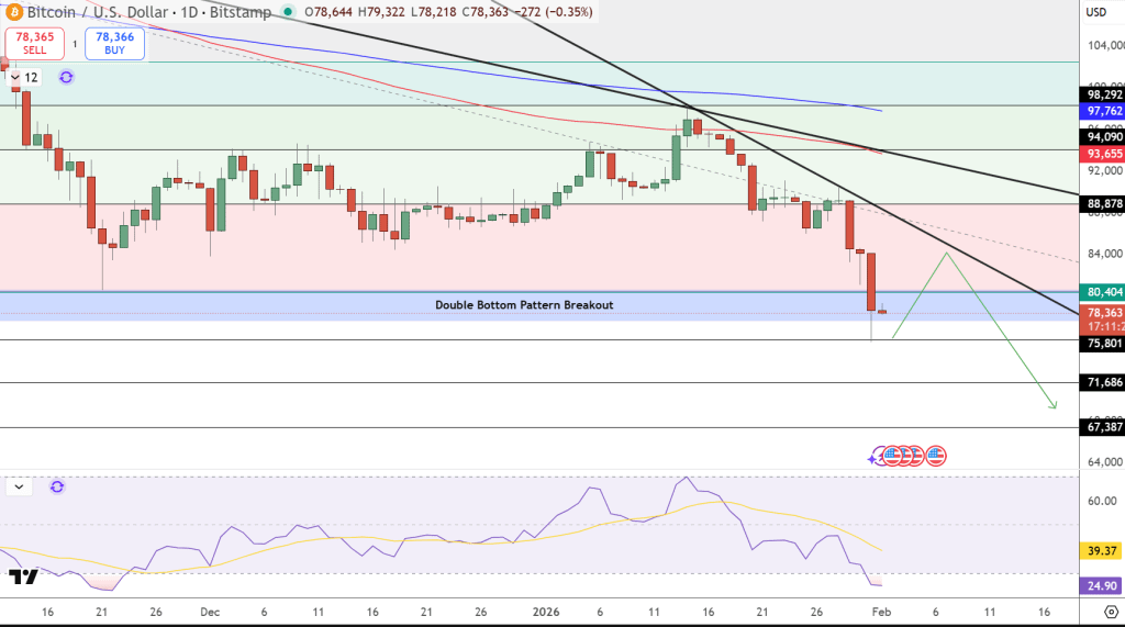 Before we jump in, quick context: Technical analysis uses price history, volume, and patterns to predict future moves. In volatile times like now (Crypto Fear & Greed Index at "Fear" levels in early Feb), indicators help spot overbought/oversold conditions, momentum shifts, and potential breakouts. We'll use BTC as our example since it's the market leader—its recent pullback from $89K (Jan 31) to $78K (Feb 5) amid ETF outflows is a perfect case study.