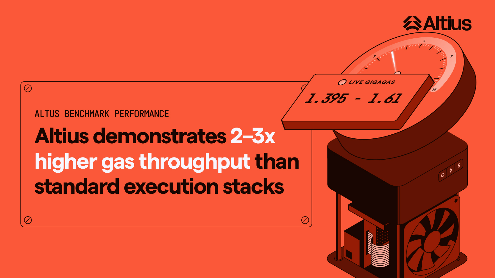 Altius so với Geth trên Ethereum Mainnet: Trong khi Geth vận hành ở mức khoảng 0.572 Ggas mỗi giây, Altius đạt 1.395 Ggas mỗi giây, tương đương mức tăng hiệu năng 2.44 lần so với client được sử dụng rộng rãi nhất. Hiện tại, Altius là client duy nhất vượt qua ngưỡng 1.0 Ggas mỗi giây, mức cần thiết cho giao dịch tần suất cao cấp tổ chức và thanh toán quy mô lớn.