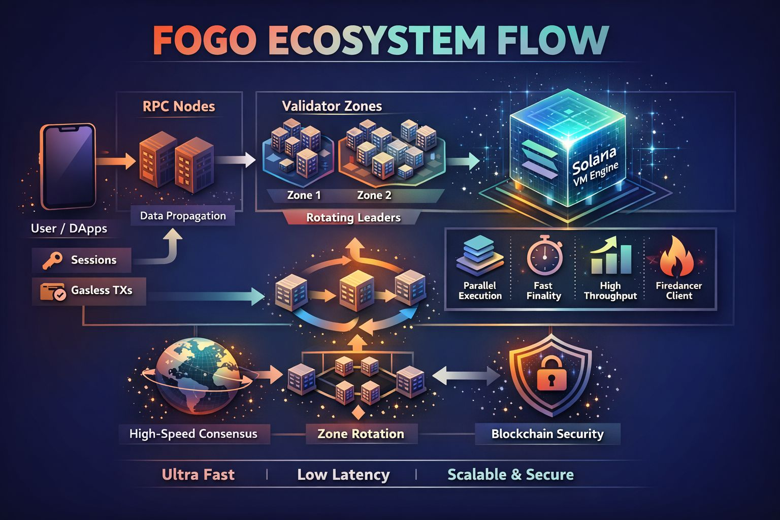 I’m going to describe Fogo the way it feels when you zoom out and then slowly move closer, because what they’re doing is not just “another Layer 1,” it’s a very specific promise that on chain trading and real time apps should stop feeling like a compromise, and it should start feeling like something you can trust under pressure, when the market is moving fast and the stakes are real and you do not want to wonder if your transaction will land in time or if the network will suddenly turn into a crowded hallway where everyone is pushing and nobody is sure what happened first. Fogo presents itself as a high performance Layer 1 built around the Solana Virtual Machine, and the emotional heart of that choice is simple: they want the speed and parallel execution style that the SVM ecosystem is known for, but they also want to rebuild parts of the network experience that usually get hand waved away, like unpredictable latency, validator performance variance, and the way congestion can turn the user experience into a guessing game.