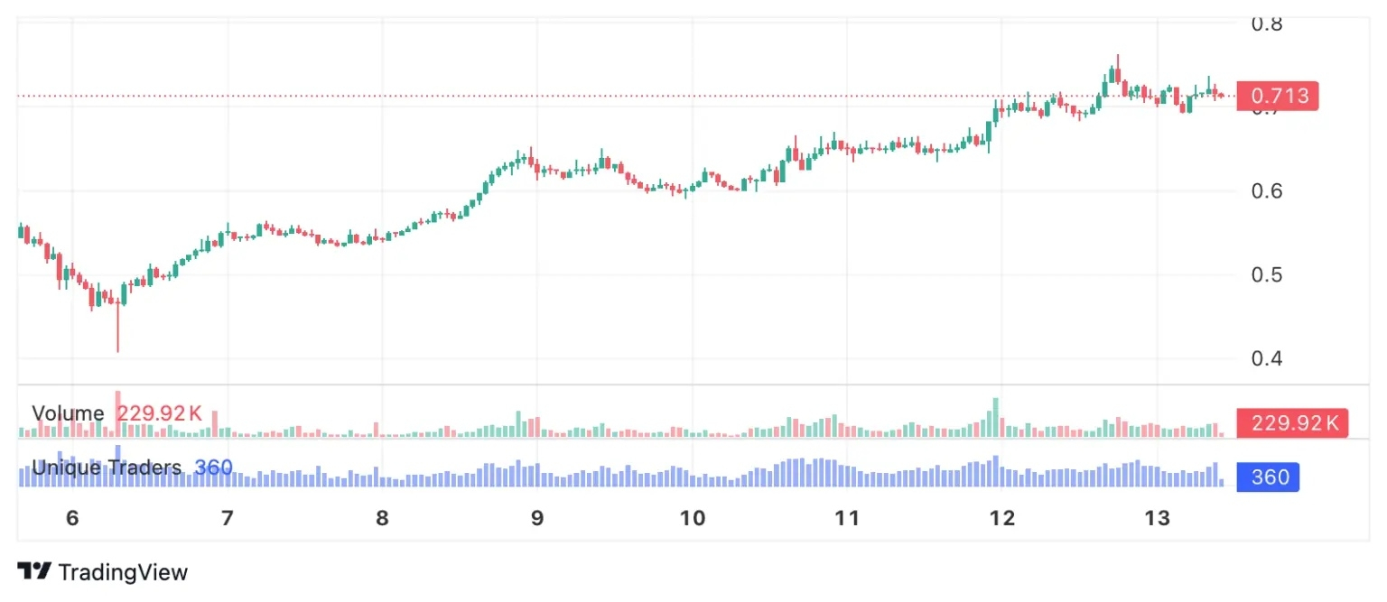 Meanwhile, Aster (ASTER) is trading around $0.7132, recording a gain of approximately 45.13% over the past week. Its market capitalization has reached $1.76 billion, with a 24-hour trading volume of about $255.35 million.