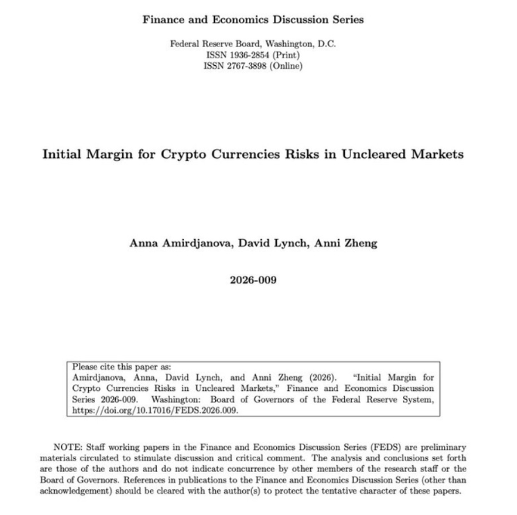 👉 A Federal Reserve working paper from February 2026 is proposing something that could reshape how Bitcoin, XRP, and other digital assets are treated in derivatives markets. The Finance and Economics Discussion Series document suggests creating a dedicated risk class specifically for cryptocurrencies when calculating initial margin in uncleared OTC derivatives. The proposal names Bitcoin, XRP, Binance-related tokens, and stablecoins as prime candidates for this specialized treatment.