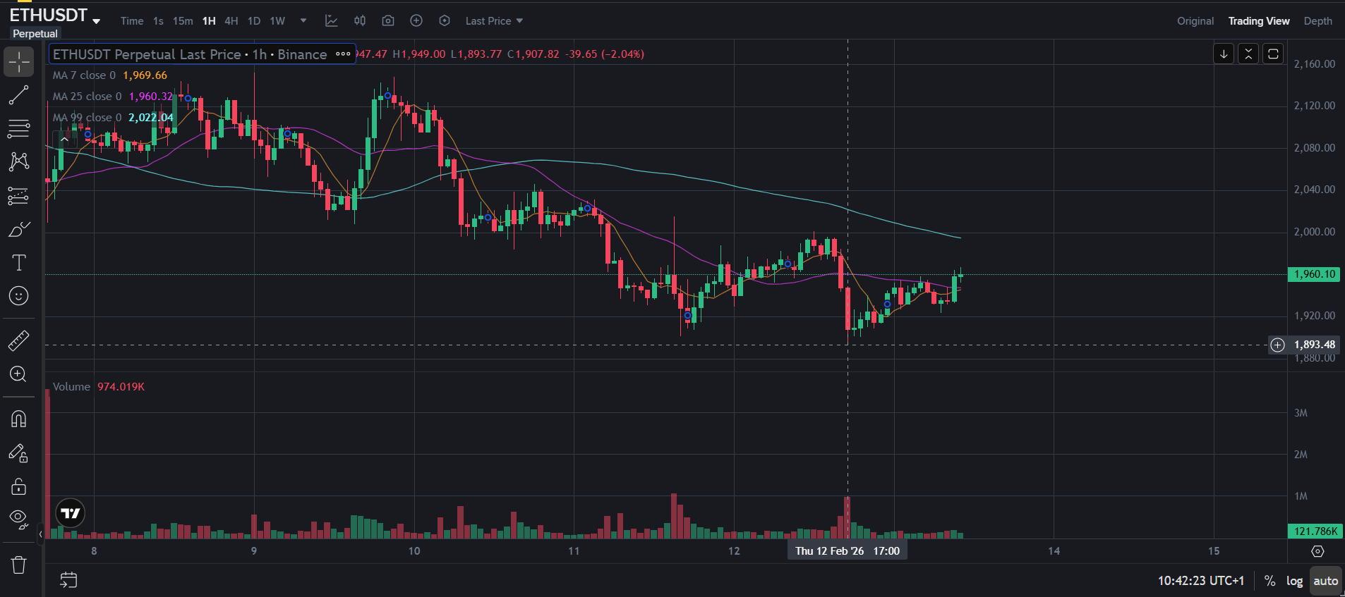 Currently, ETH is in a calm phase. Volatility has compressed after hitting a low around $1,747.