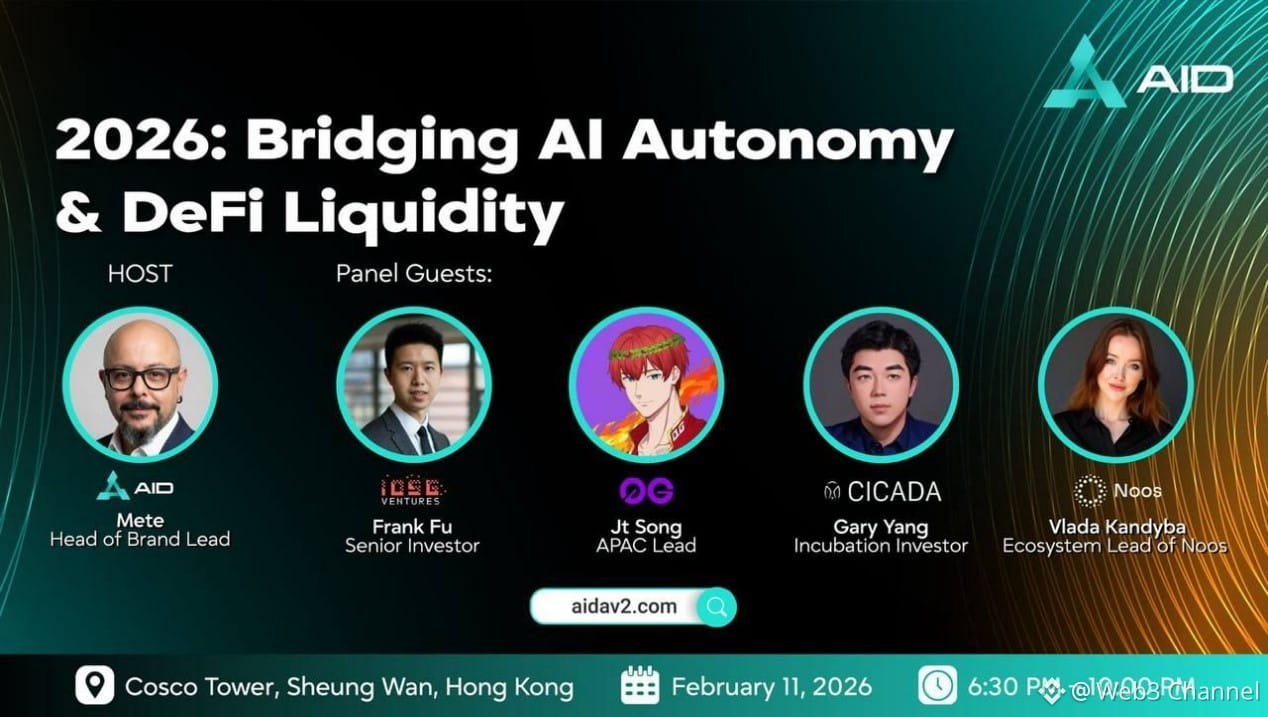 On February 11, an AI-themed conference hosted by AID was held in Hong Kong, bringing together speakers from IOSG Ventures, 0G Labs, Cicada Finance, and Noos. Aimed at industry participants and developers, the event focused on frontier topics such as AI Agents, DeFi liquidity, and the Agent Economy, exploring practical paths for integrating AI autonomy with decentralized financial infrastructure.