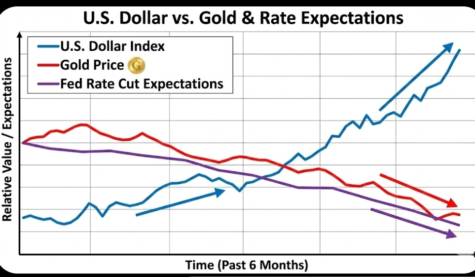 Gold and the dollar usually move in opposite directions. A firmer dollar makes gold more expensive for international buyers. At the same time, higher interest rates increase the appeal of yield-bearing assets like bonds. Gold doesn’t pay yield. So when real yields rise, gold often feels the pressure.