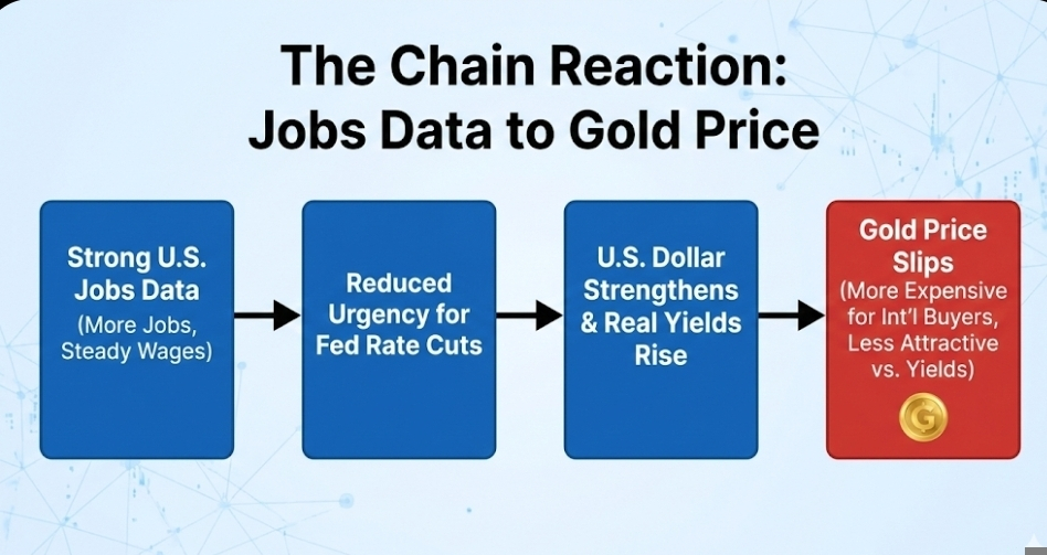 The latest U.S. employment data came in stronger than expected. More jobs added. Wages holding up. Unemployment steady. On the surface, that sounds like good news. And it is — for the economy. But for gold? Not so much.