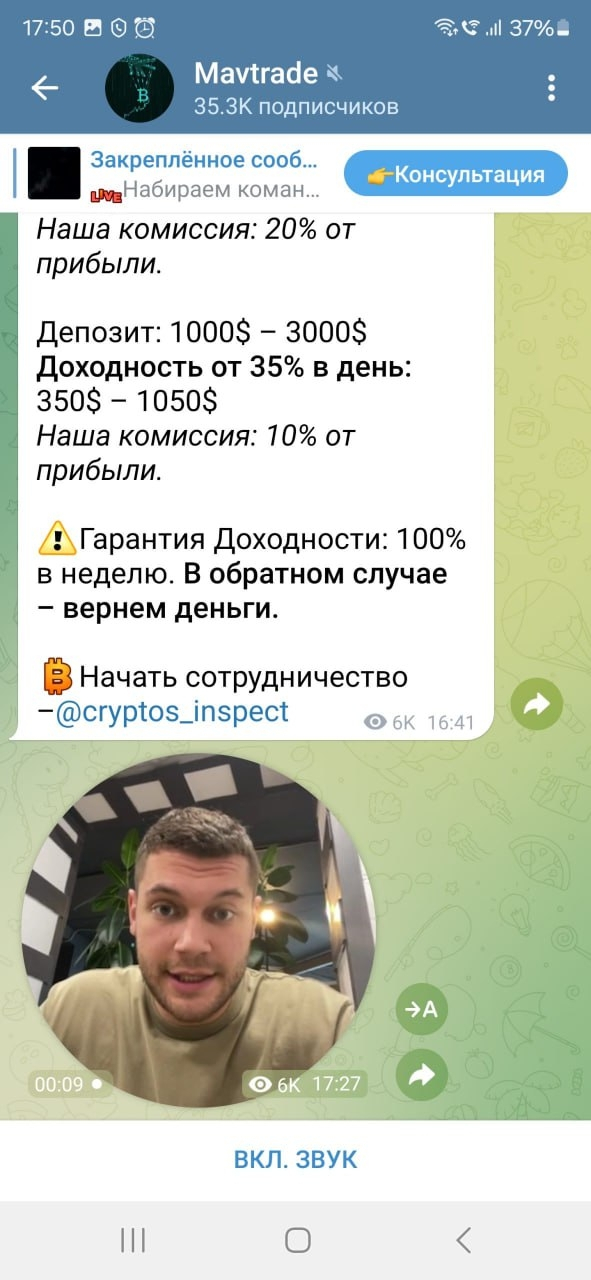 - После депозита жертву добавляют в группу на 4-6 человек. Все, кроме жертвы, - боты/подсадные: показывают "результаты", рисуют "прибыль", подталкивают пополнять больше и быстрее.