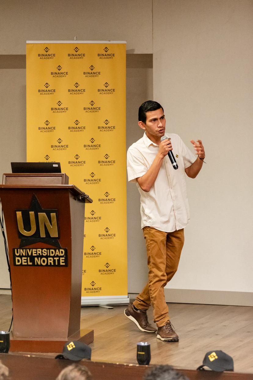 Al día siguiente, la energía continuó en la Universidad del Norte, donde nos encontramos con más de 130 estudiantes ansiosos por entender este ecosistema. Hablamos sin tecnicismos, sin complicar lo que no necesita complicarse. Conversamos sobre la evolución del dinero, sobre cómo la Web3 está transformando la forma en que interactuamos con las finanzas y sobre cómo Binance puede ser una puerta de entrada accesible para quienes quieren empezar.