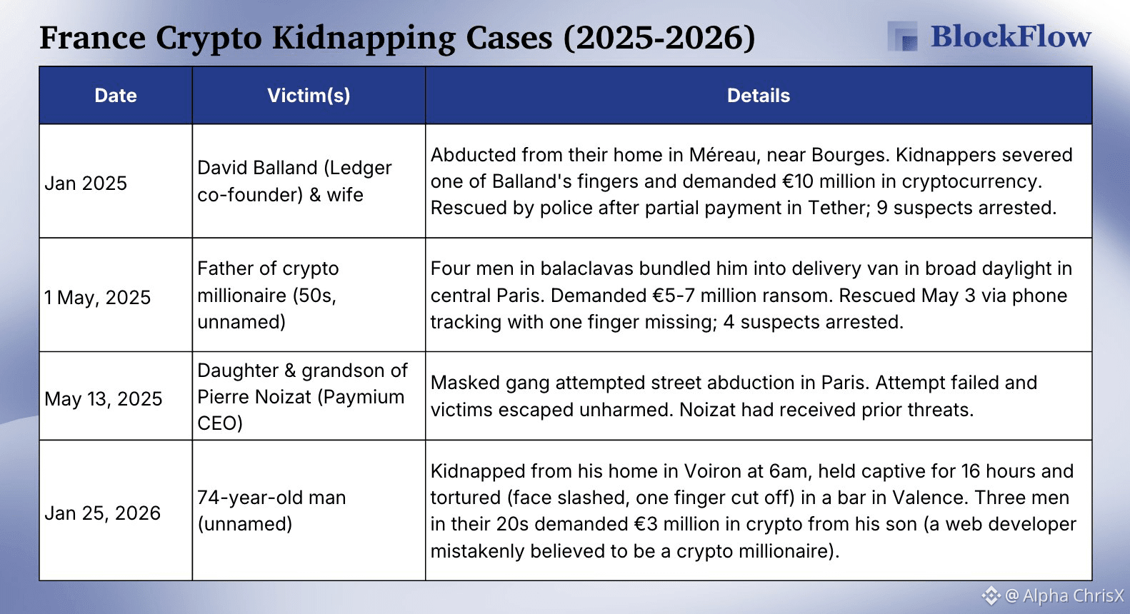 Below, weโve outlined several other high profile crypto kidnappings that took place across France between 2025 and 2026 ๐๐ป