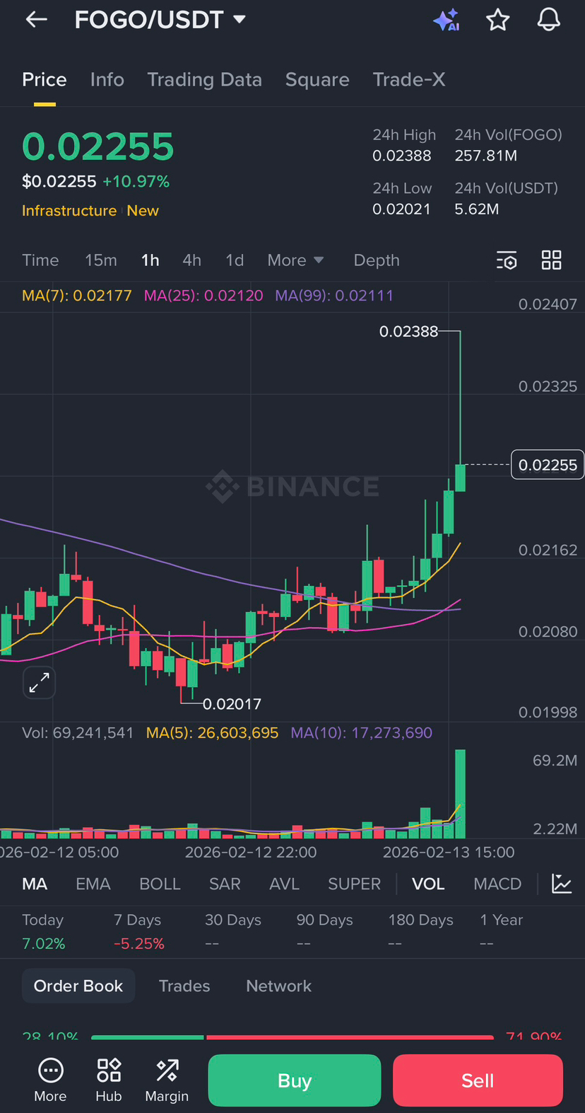 Looking at the FOGO/USDT snapshot, the move is obvious: price pushed up into the $0.02 zone (around 0.0225) with a strong green expansion and a clear volume spike. That’s the part most people tweet about.