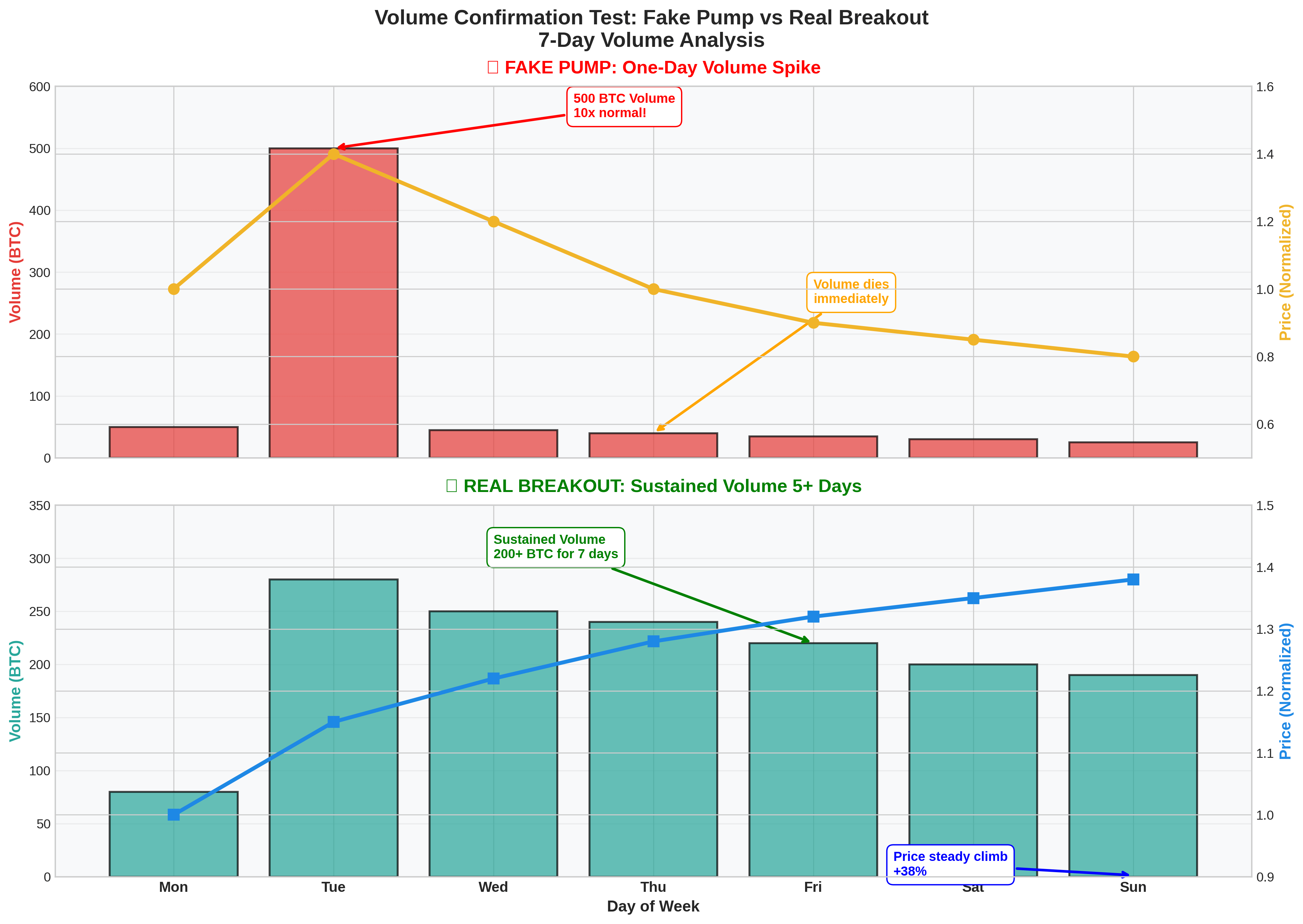 Example: A coin pumps 40% on 500 BTC volume Monday. Tuesday volume is 50 BTC. That is noise. But if Tuesday shows 300 BTC and Wednesday 250 BTC, investigate further because real demand might exist.