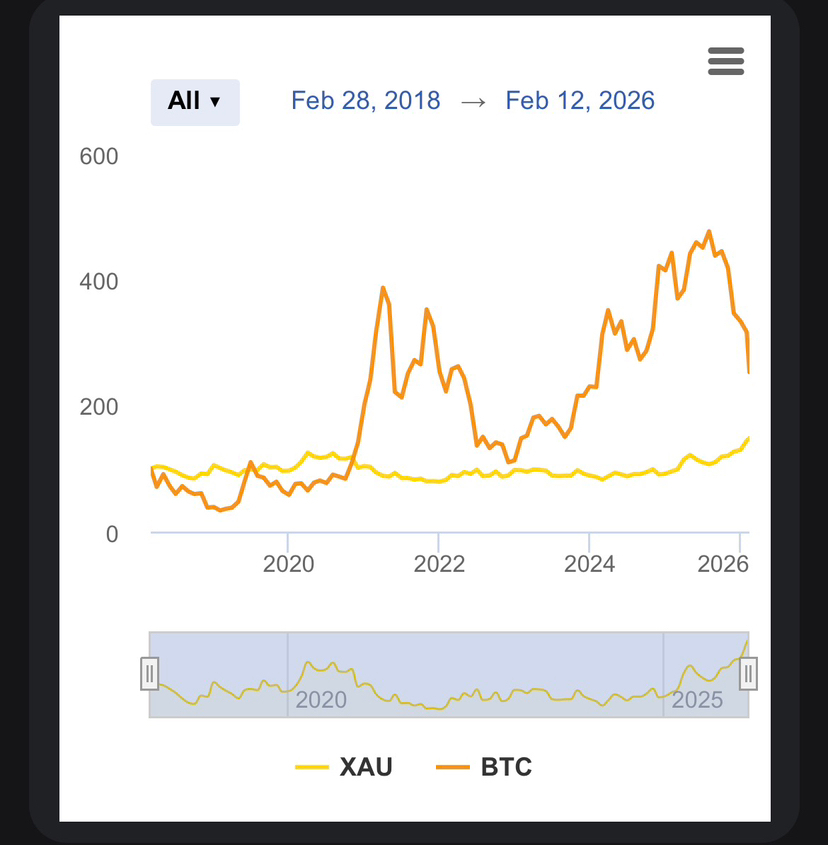 A comparison with gold further clarifies the nature of the test. From 2018 to 2026, gold shows relatively stable growth, while Bitcoin experiences sharp expansions followed by deep contractions, with volatility multiples far exceeding gold. The challenge here is not choosing the correct asset, it is accepting the nature of the one being held. Bitcoin does not test investors with low returns, it tests them with extreme swings and long waiting periods.