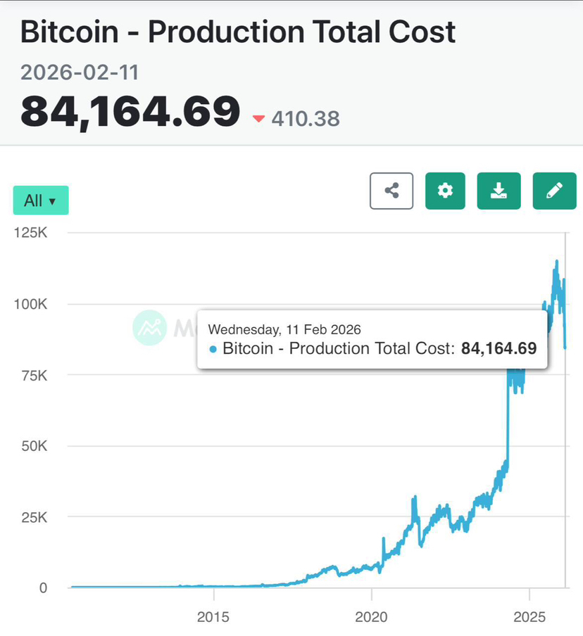 When the current price is compared with production cost, the test shifts from emotion to structure. Data shows that the average cost to mine one Bitcoin has risen to approximately 84,164 USD, more than 20 percent above the market price. This means a significant portion of miners are operating below breakeven. Historically, periods when price trades near or below production cost are not moments of network weakness, they are moments of forced efficiency, where weaker participants are removed and the system is pushed to rebalance for long term survival.