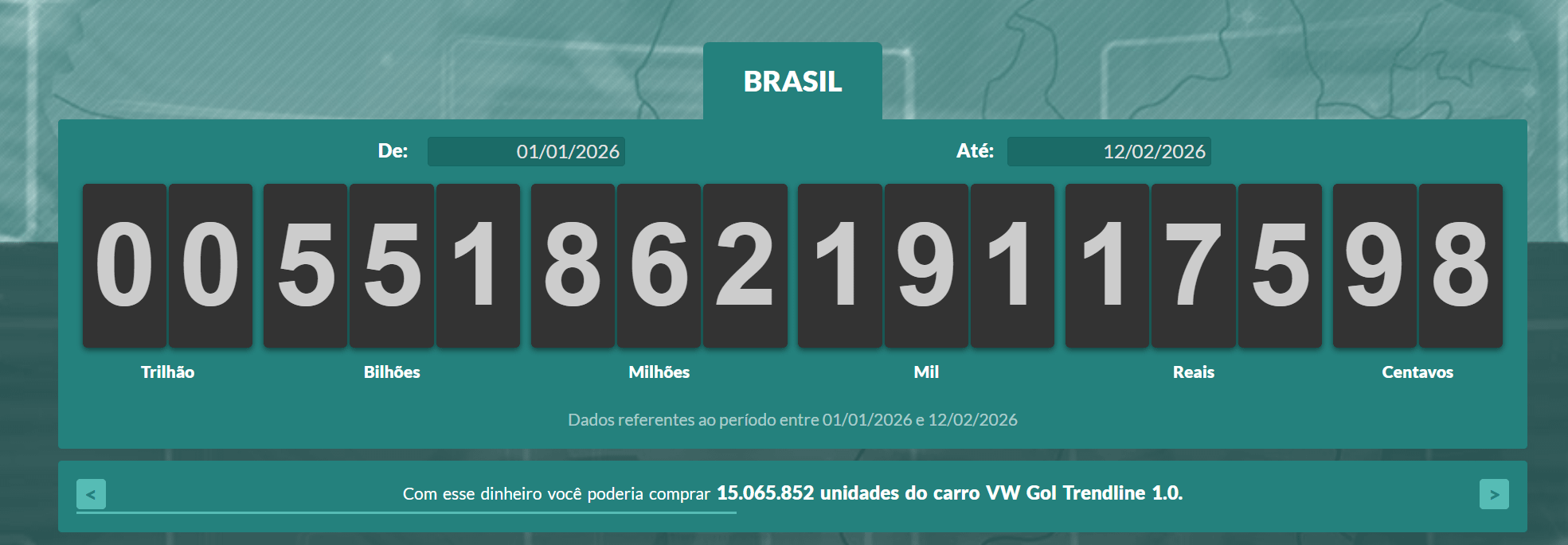 Olha só esses números de 2026: em janeiro e fevereiro o governo já arrecadou R$ 541 bilhões. São 42 dias apenas! Isso dá uma média de R$ 12,9 bilhões POR DIA. A projeção pro ano inteiro é de R$ 4,7 trilhões.
