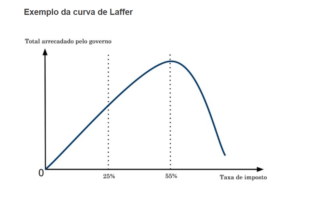 A teoria é basicamente assim: existe um ponto ótimo de tributação. Até esse ponto, quando você aumenta os impostos, a arrecadação sobe. Mas depois desse ponto mágico, acontece o inverso - quanto mais você aumenta os impostos, MENOS o governo arrecada.