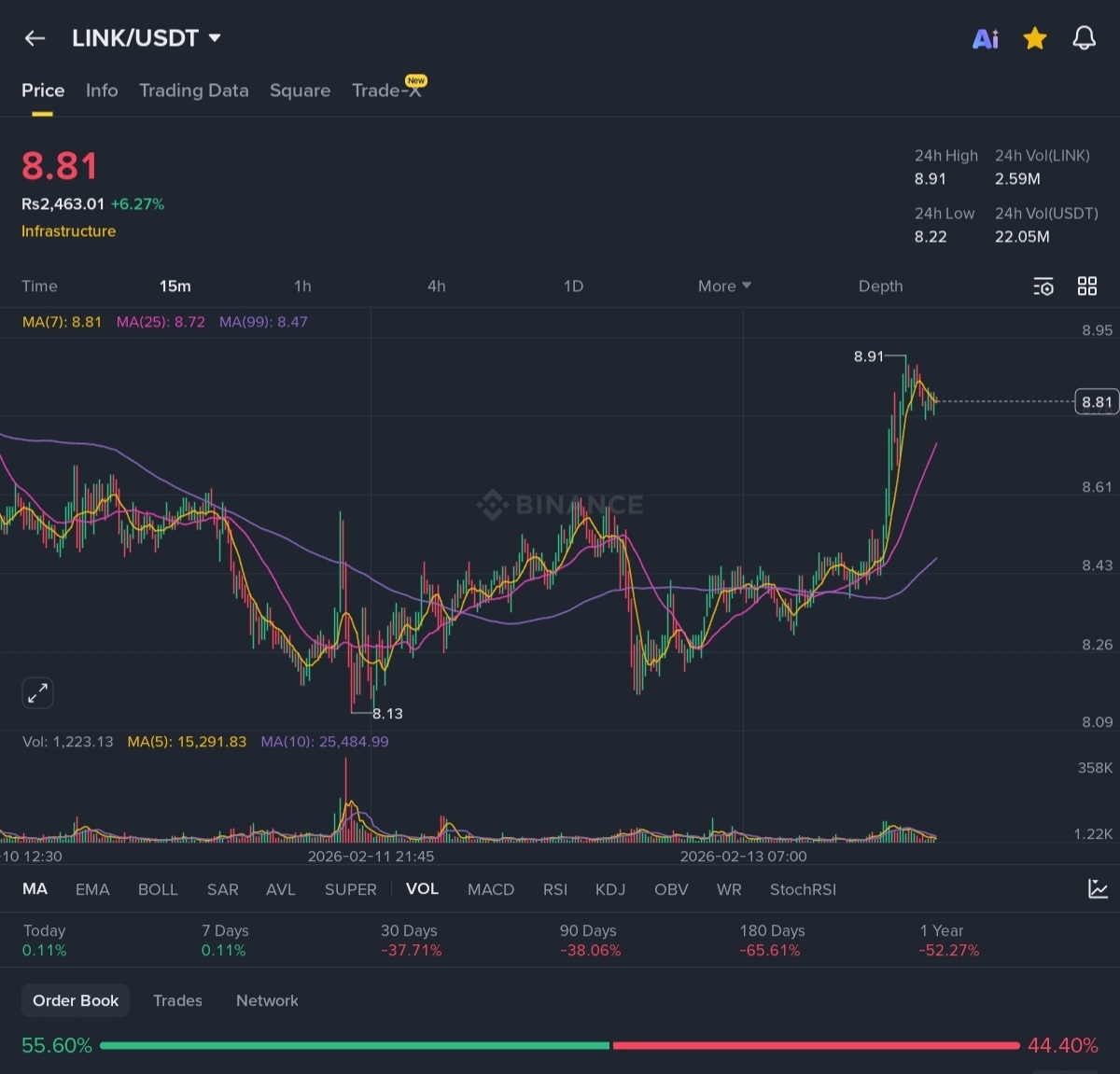 What I see on the chart (15m $LINK /USDT)