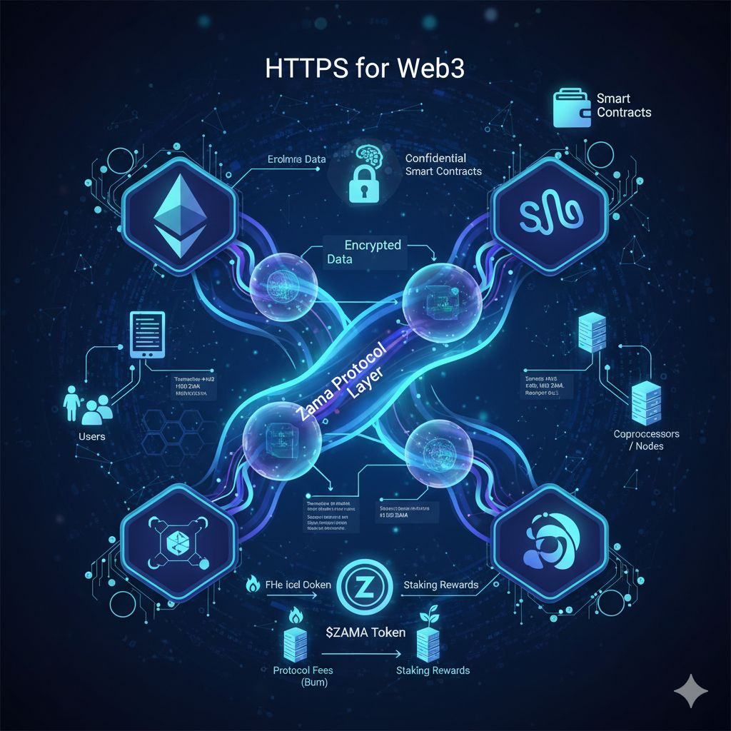 Zama aims to solve the fundamental privacy dilemma in blockchain: public transparency versus the need for confidentiality in sensitive applications. Its protocol enables confidential smart contracts, allowing developers to build private decentralized finance (DeFi), encrypted payments, and sealed-bid auctions where transaction details remain hidden yet verifiable. This positions Zama as a foundational privacy infrastructure, often called the "HTTPS layer for Web3" (Phemex). The ZAMA token powers this ecosystem, used for protocol fees—which are burned—and for staking to earn operator rewards.