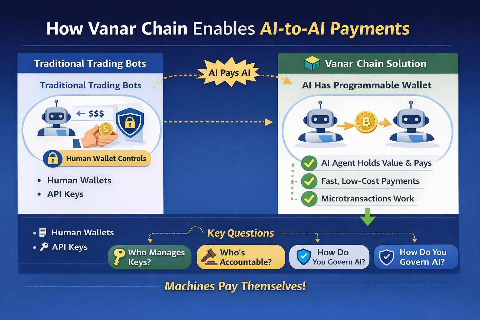 In crypto markets, machines already dominate activity. Trading bots move faster than people ever could, and in many venues they account for the majority of volume. Yet even with all that automation, the financial rails are still human-controlled. The logic runs on its own, but wallets, permissions, and final approvals usually belong to people. The machine decides, but a human still holds the keys.