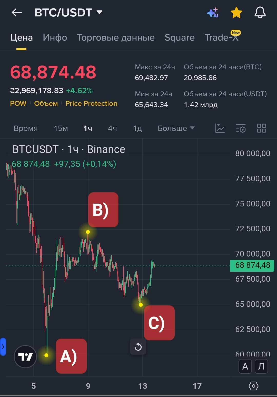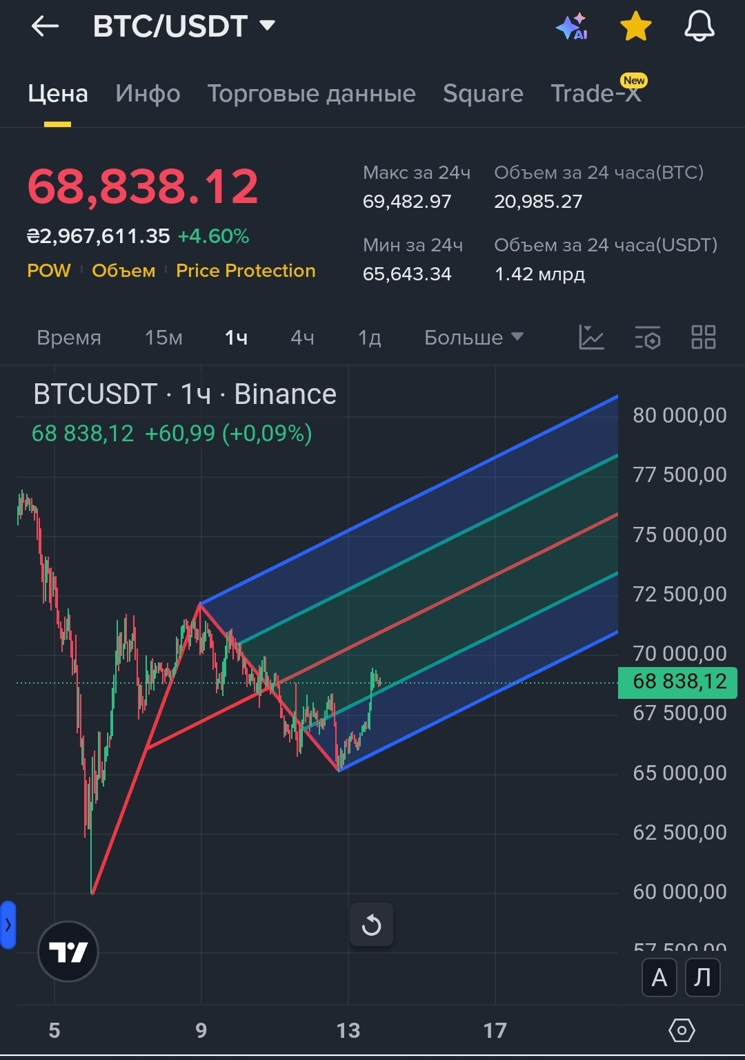 ✔️ Фибо 0.618 совпадает с нижней границей