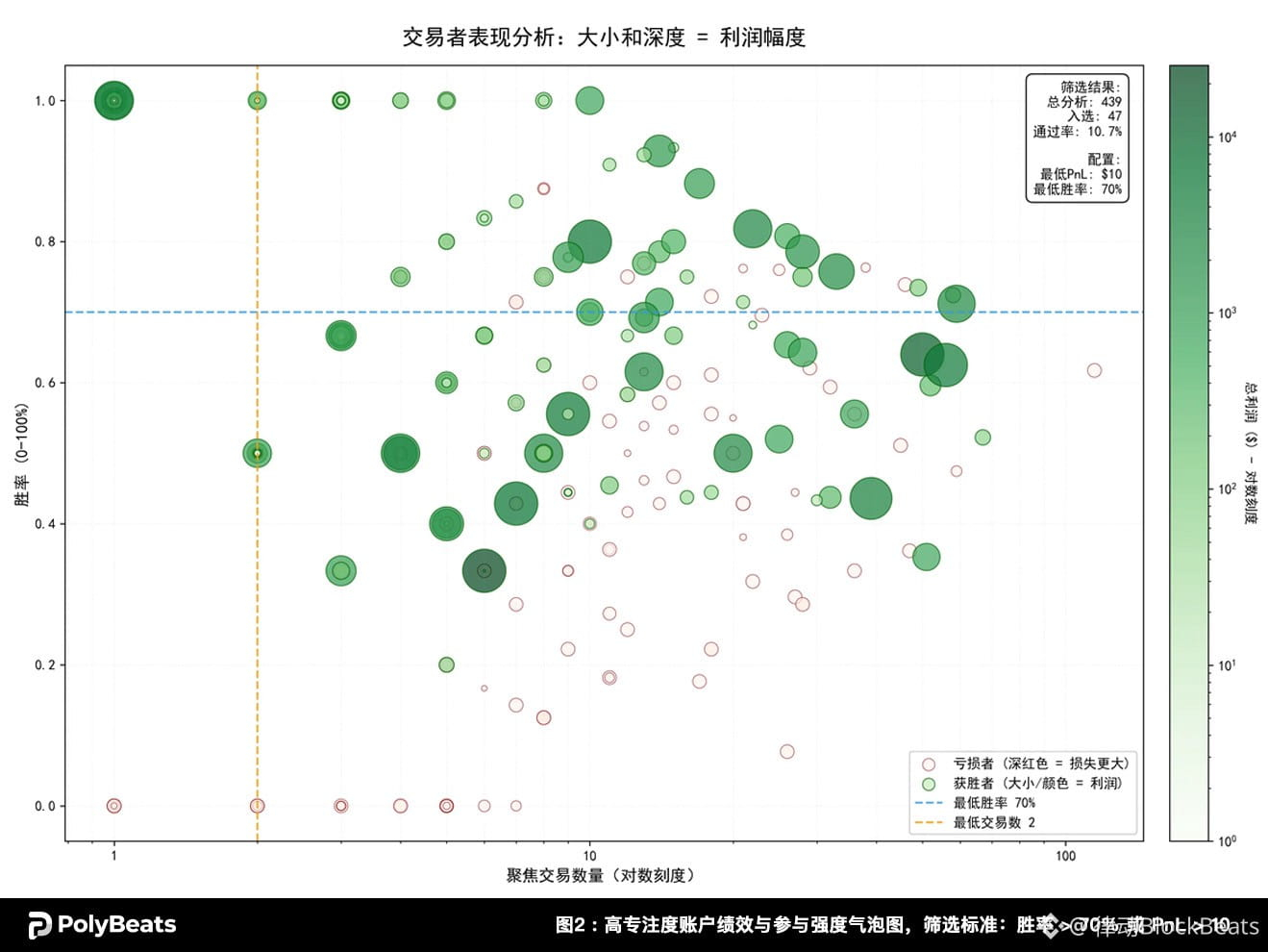 通过加权胜率、盈利、最低交易数量后,我们从这 439 名高度专注账户中进一步提炼出 47 个高可疑度账户,供人工复核。