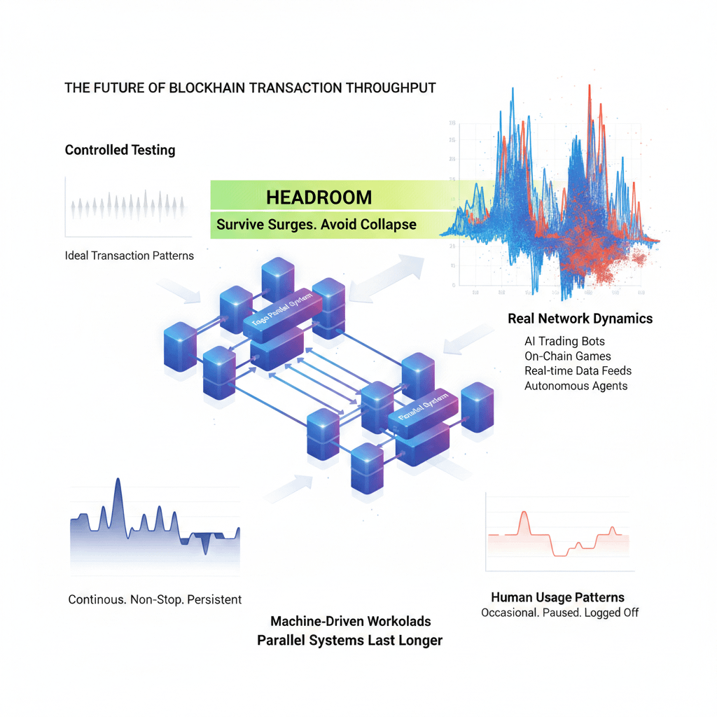 That is where many blockchains reveal their limitations. Congestion rises. Fees spike. Throughput collapses. Finality slows. What looked smooth under light load begins to fracture under stress.