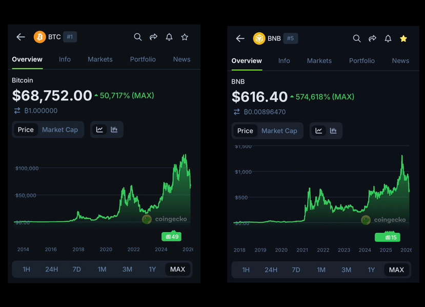 When viewed over a long time horizon, the contrast becomes even clearer. Bitcoin’s price history reflects the power of immutable design and game theory, surviving every cycle without leadership or intervention. BNB’s history reflects the resilience of an operating system for crypto, one that evolves, adapts, and remains relevant precisely because it is guided. These are two different sources of strength, but they exist on the same tier of importance.