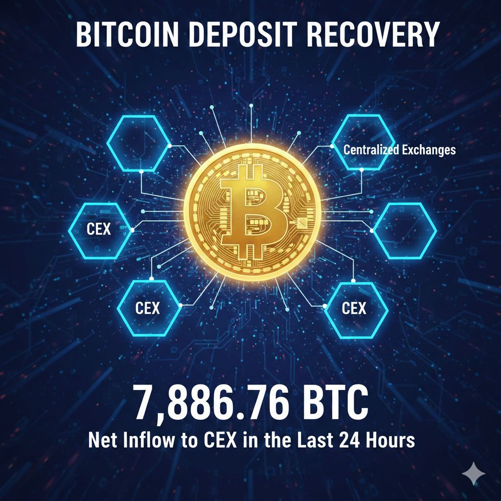 Bitcoin Deposit Recovery: 7,886.76 BTC Net Inflow to CEX in the Last 24 Hours
