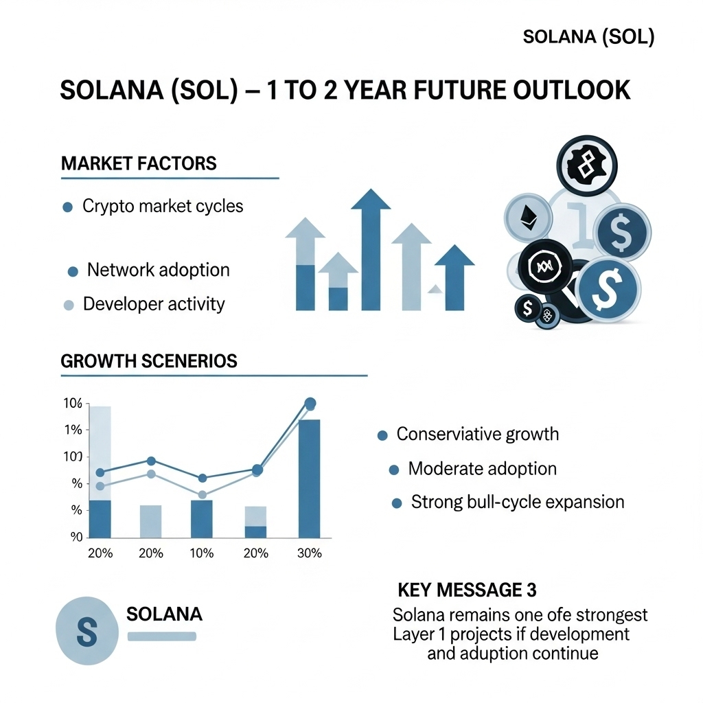 At the current price range, the key question is not whether Solana can survive, but how far it can realistically go over the next 1 to 2 years.