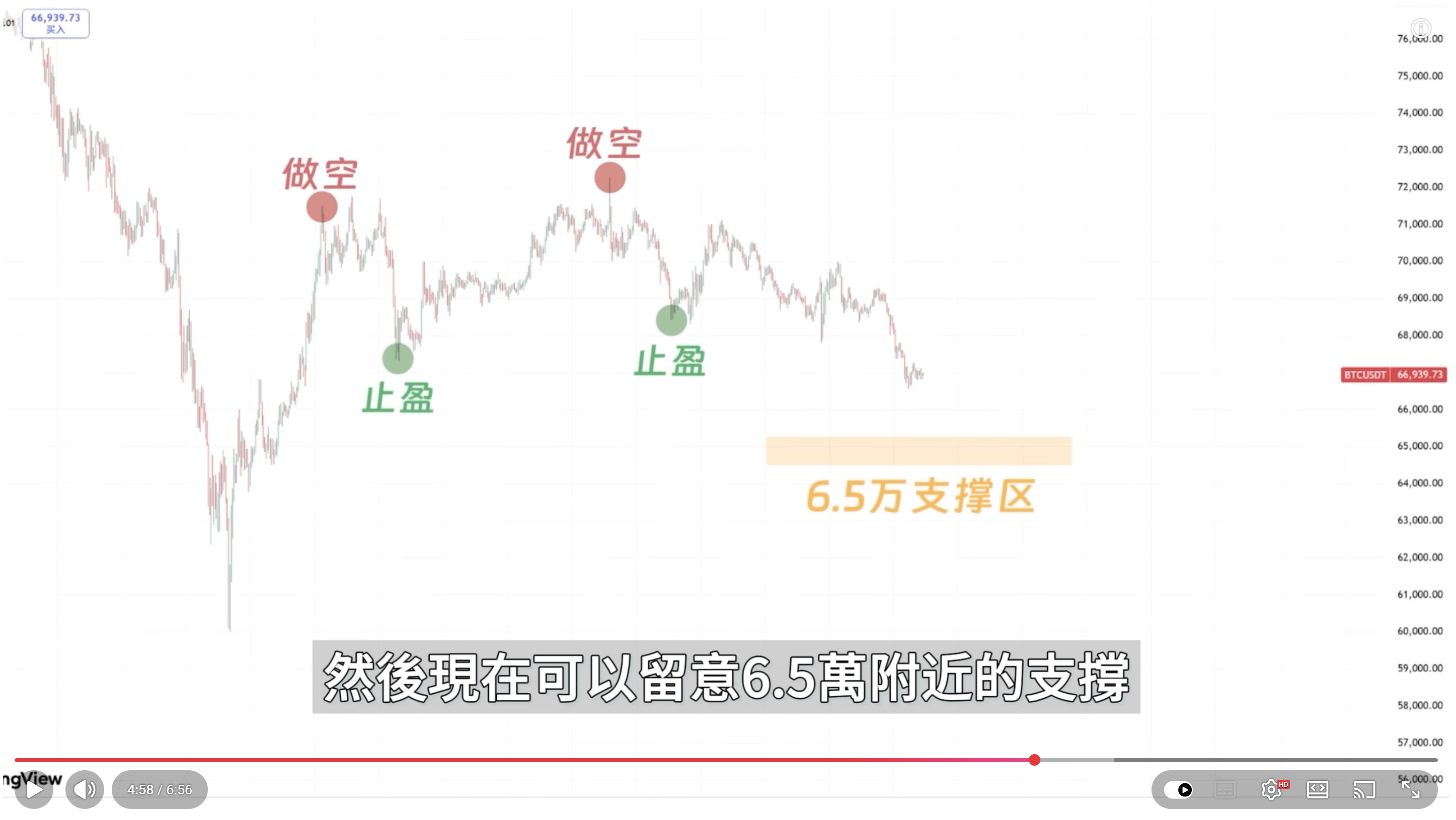 3. 而这次反弹的最终点其实不一定是在7.15万,因为这里已经测试了两次,咱们都做空吃到了,第三次再来 最终突破的概率就大大增加,所以咱们7.15万的空单只是浅尝即止,吃个小回踩就可以了。