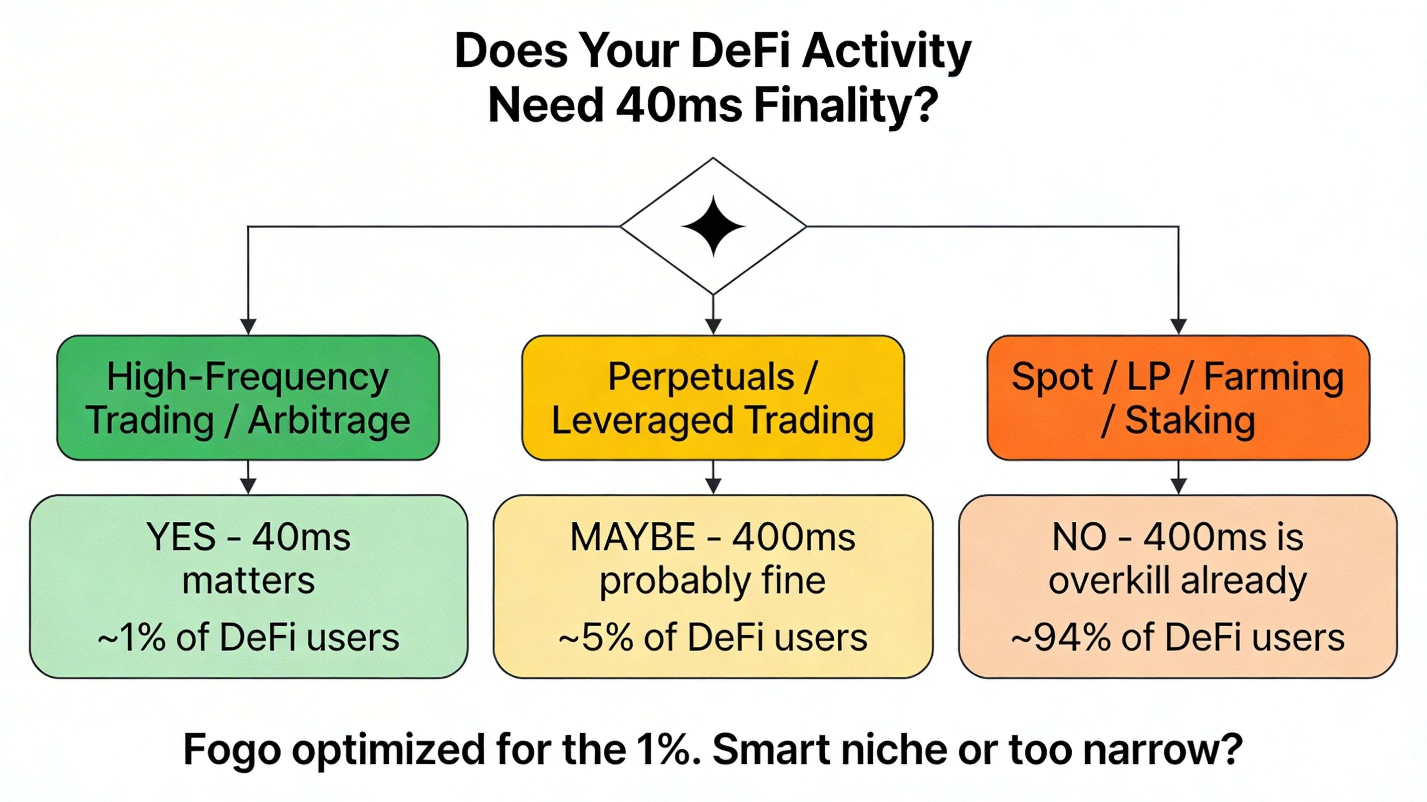 most likely? Fogo works great technically, stays niche. speed matters for 1% of users. building for that 1% is genius targeting or missing market.