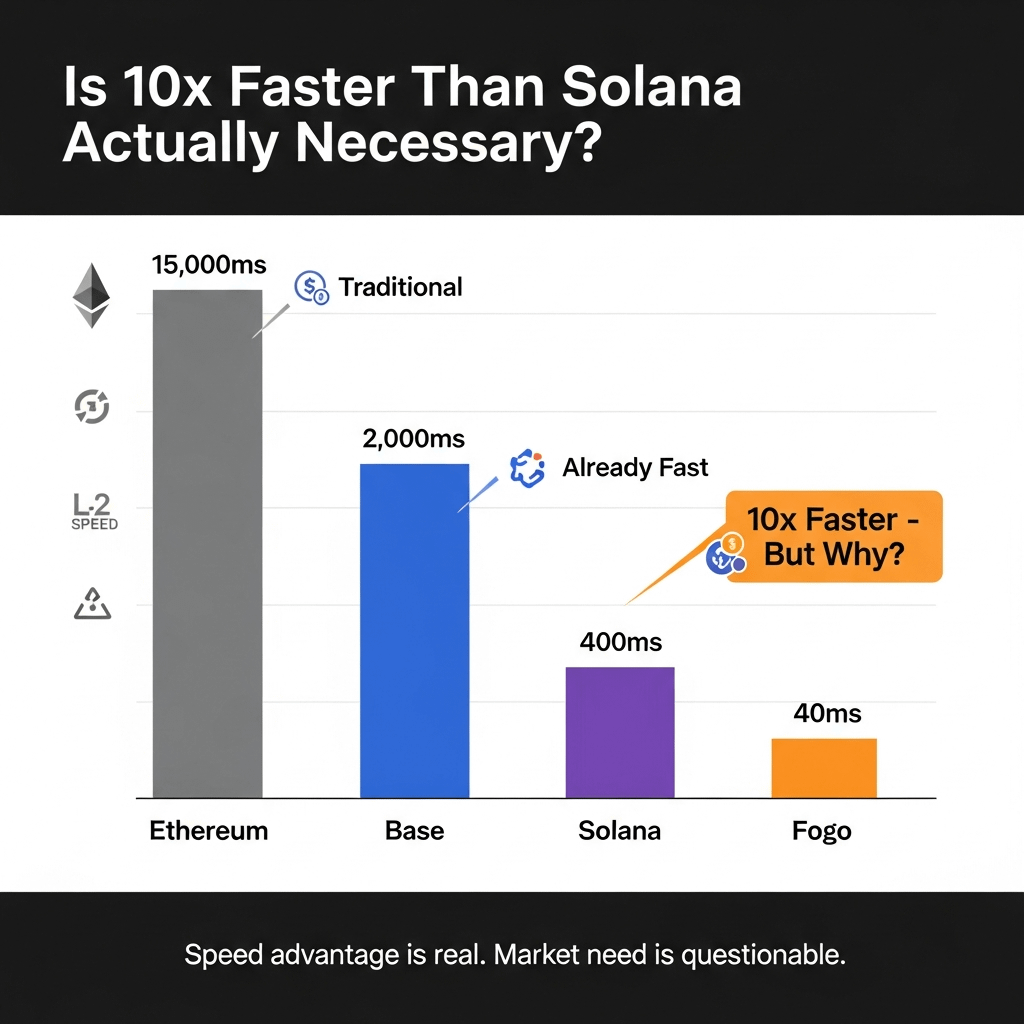 been watching this Fogo launch. everyone's flexing 40ms block times - 10x faster than Solana. impressive. but honestly? missing the point 😂