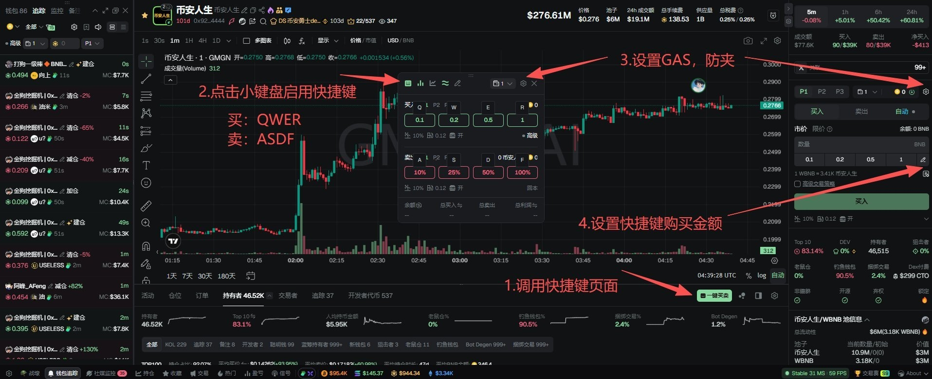 快速塞入,一般滑点是100%,开MEV防夹子保护,GAS FEE看你愿意给多少了。