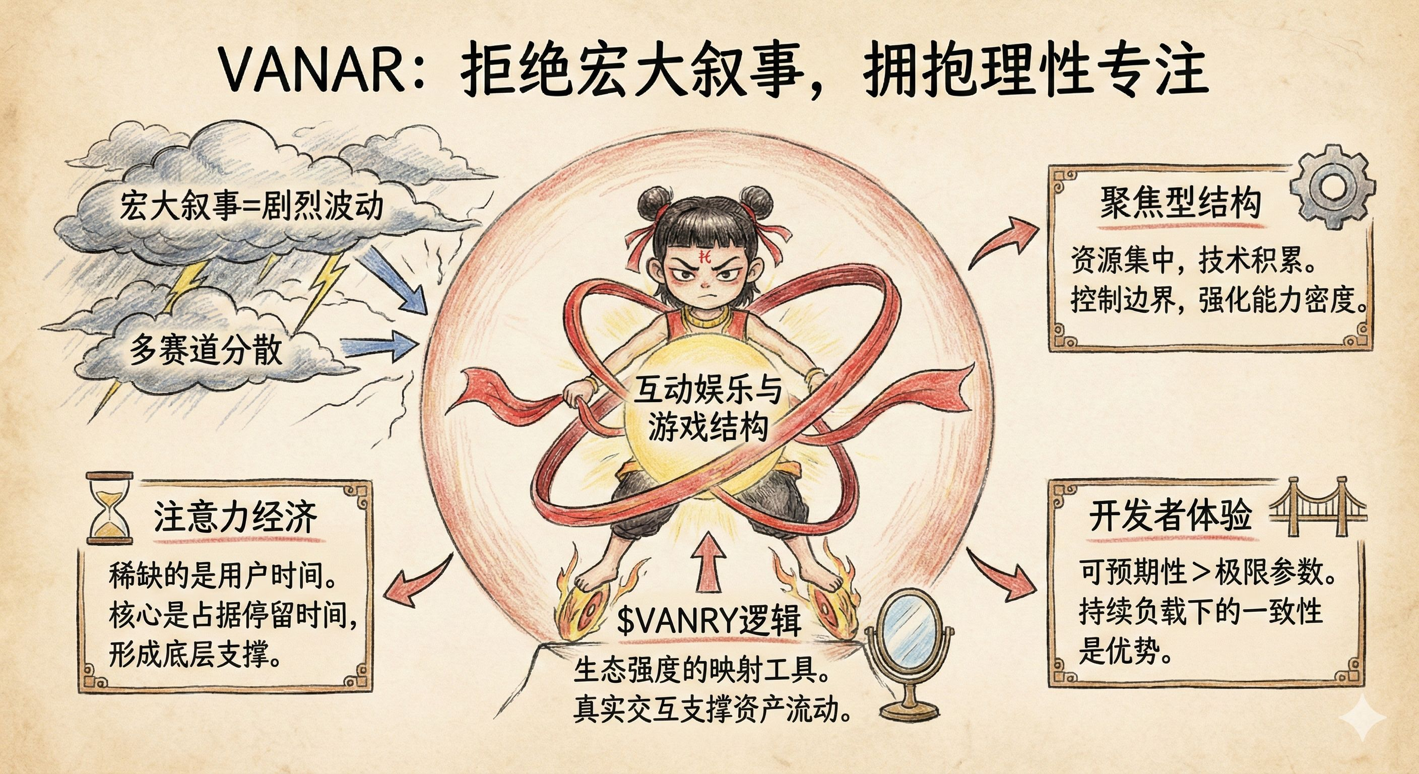 @Vanarchain 反而选择了一条更窄的路径,把重心压在互动娱乐与游戏相关结构上。这种收敛不是保守,而是一种风险控制方式。聚焦意味着资源集中,也意味着团队可以围绕特定应用形态反复优化,而不是在不同赛道之间来回摇摆。长期来看,聚焦型结构更容易形成清晰的技术积累。