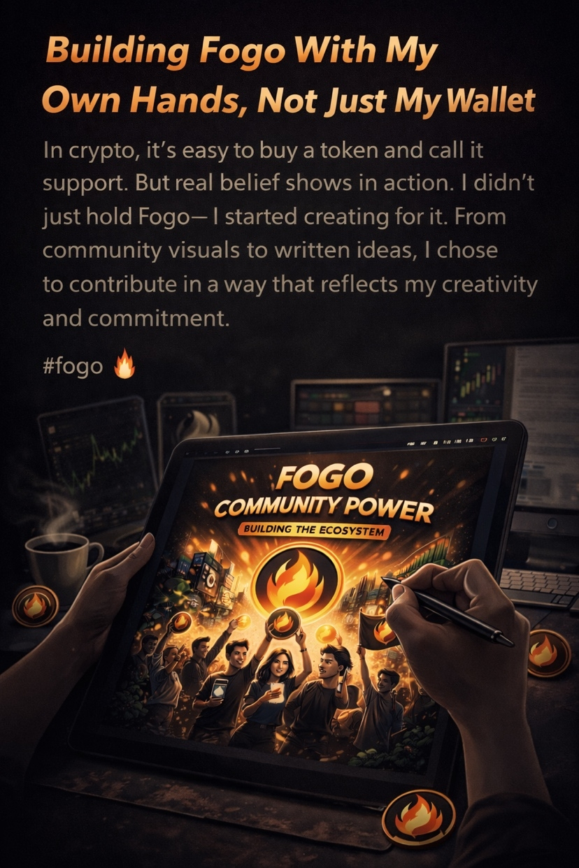 In crypto itseasy to buy a token and call it support but real belief shows in action. I didn’t just hold Fogo I started creating for it from community visuals to written ideas I chose to contribute in a way that reflects my creativity and commitment.