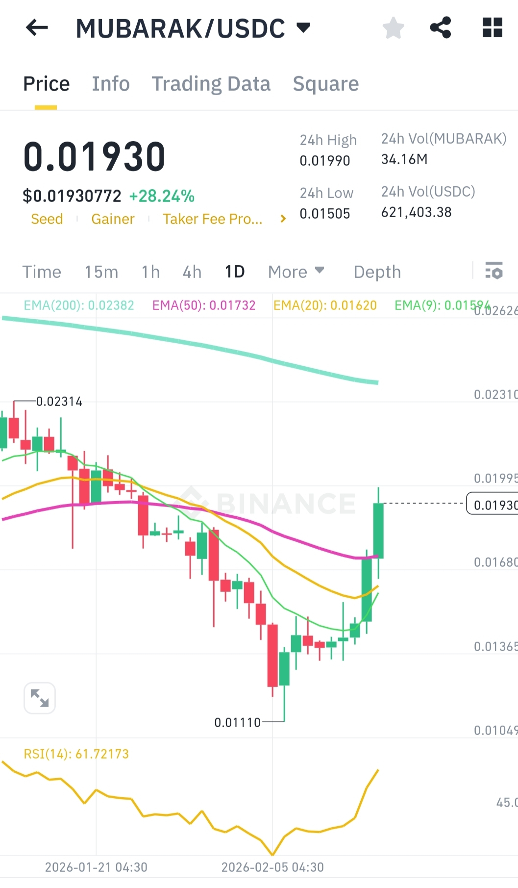 24-Hour Volume: 34.16M MUBARAK