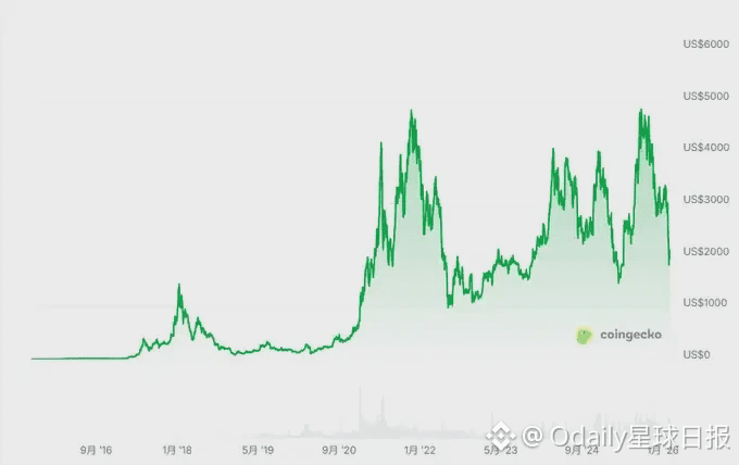 换算一下更扎心:2018 年 1 月,ETH 首次站上 1400 美元。那 1400 美元按美国 CPI 通胀复利调整,到 2026 年 2 月相当于约 1806 美元。