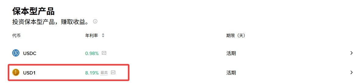✅神器 1:USD1 保本活期 —— 稳定币打底首选,随存随取 8.19% 年化