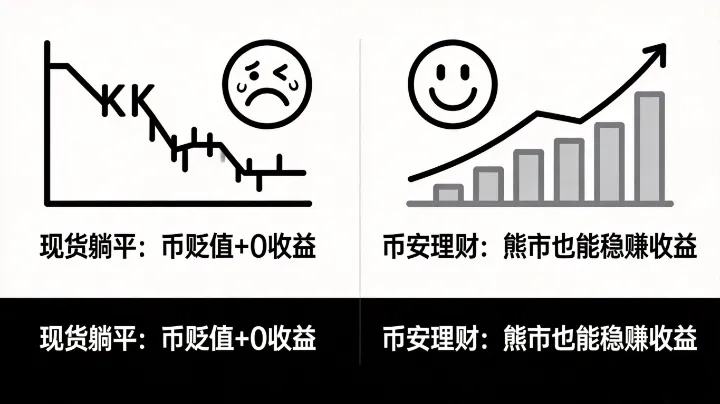 家人们!熊市横盘别再让你的 U 和币在现货账户空转贬值了!追涨杀跌亏麻了,放着不动又没收益?今天给你们扒 3 个币安官方实测能用的理财神器,从保本打底到进阶冲高息,全是干货,看完直接抄作业!