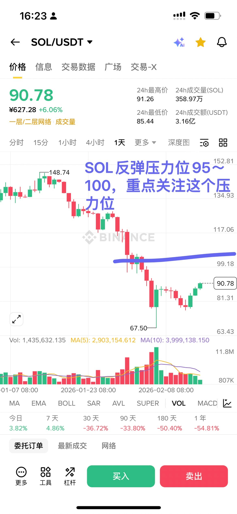 SOL这一波表现非常不错,昨天的文章就跟大家说过,SOL有补涨需求,反弹目标95~100,行情基本上也按照我们的预期再走,按照目标点位分批止盈即可。