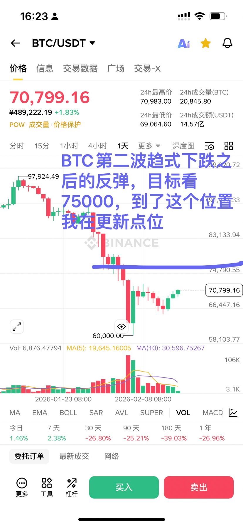 BTC反弹回7万,一群人又开始看牛市了,之前BTC从8万反弹到9.8万的时候,一群人开始看新高,前段时间跌到6万的时候,一群人又开始看3万,这个市场很多人涨了看涨,跌了看跌,我们不要被市场情绪牵着鼻子走,如果一直跟随大众心理,那么在这个市场上永远都只有亏钱的份。