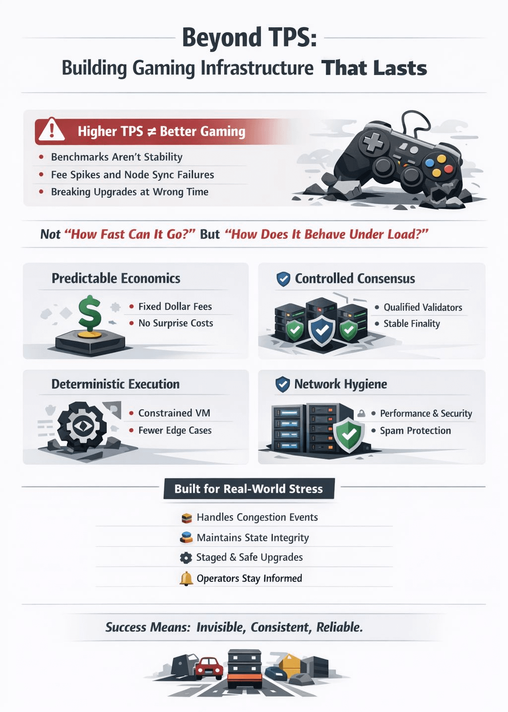 In operational reality, that assumption rarely survives contact with production systems. Games do not collapse because a chain failed to hit a benchmark. They collapse because transactions behave unpredictably under load, because fees spike without warning, because nodes desynchronize, because upgrades introduce breaking changes at the wrong time. In other words, they fail because infrastructure was treated like a marketing surface instead of a reliability system.