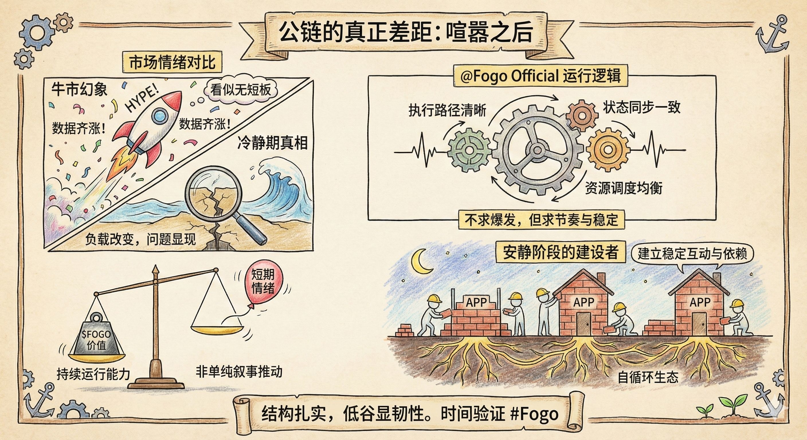 市场节奏会反复切换,情绪会被不断放大又消退。但结构如果扎实,就会在低谷中显现韧性。Fogo 是否最终走得更远还需要时间观察,但至少目前,它展现出的推进节奏让我愿意继续跟踪。对我来说,真正值得长期关注的,从来不是声音最大的一条链,而是在安静阶段依然保持建设能力的那一条。