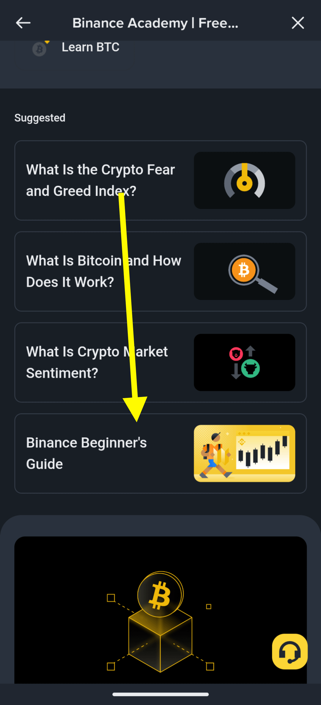 This last step is for those who are new to Binance and tarding and don't know where to start learning. When you're at Binance Academy page scroll down a bit and then you'll see a lecture for new Binancians it goes by the name of Binance Beginners Guide. When you click on it you'll start learning about Binance, Blockchain technology and crypto trading. If you want to be a successful trader in the future then don't miss your Binance Academy lectures and learn diligently 💛