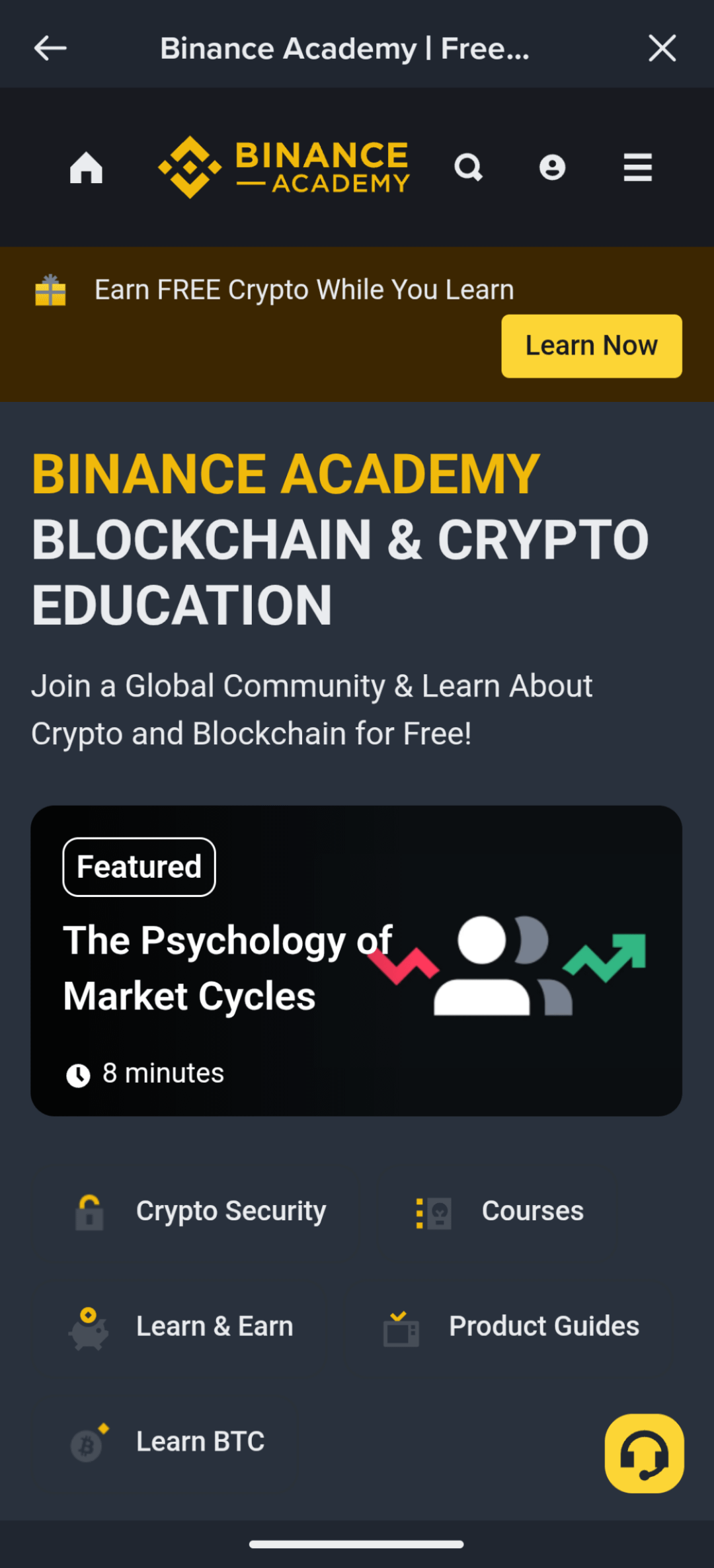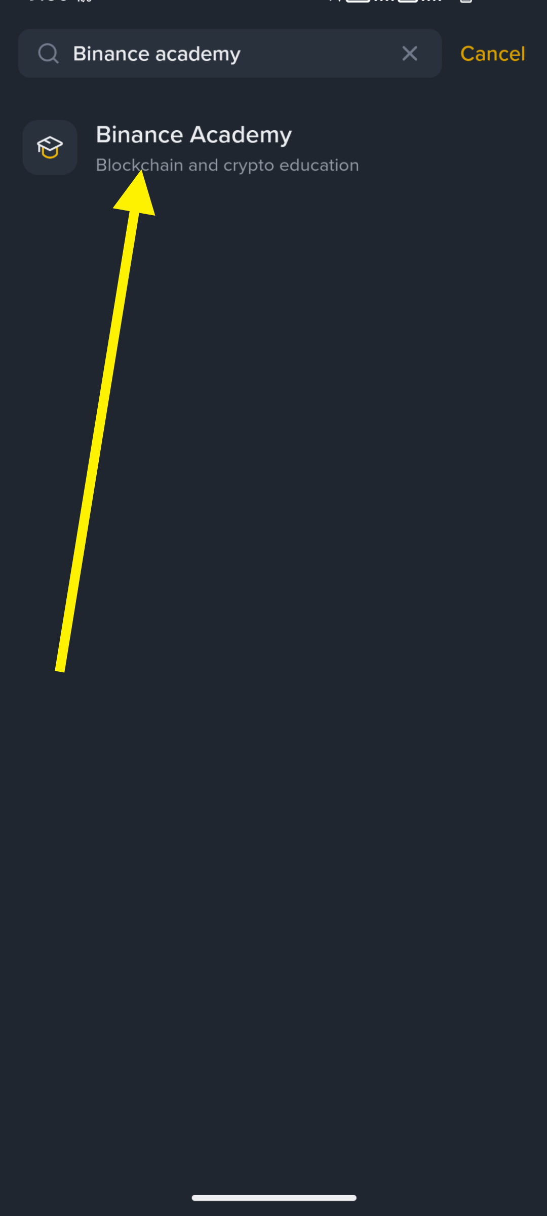 After searching for Binance Academy and hitting enter you'll see this option and that's where you'll enter in Binance Academy and start learning.
